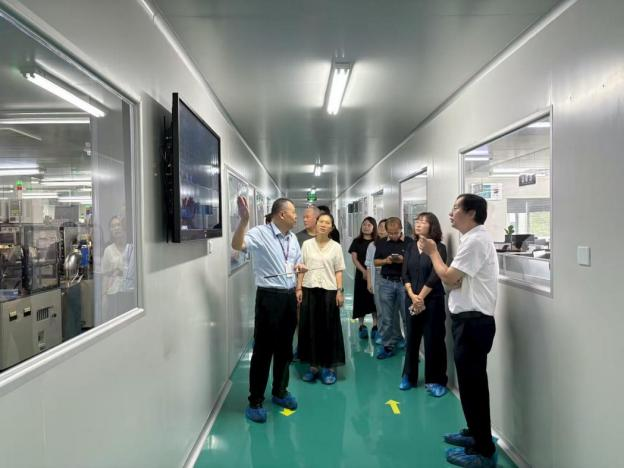 座谈会前,秦总陪同院方一行参观现代化生产线,现场讲解液晶屏及Mini-LED等产品工艺流程。