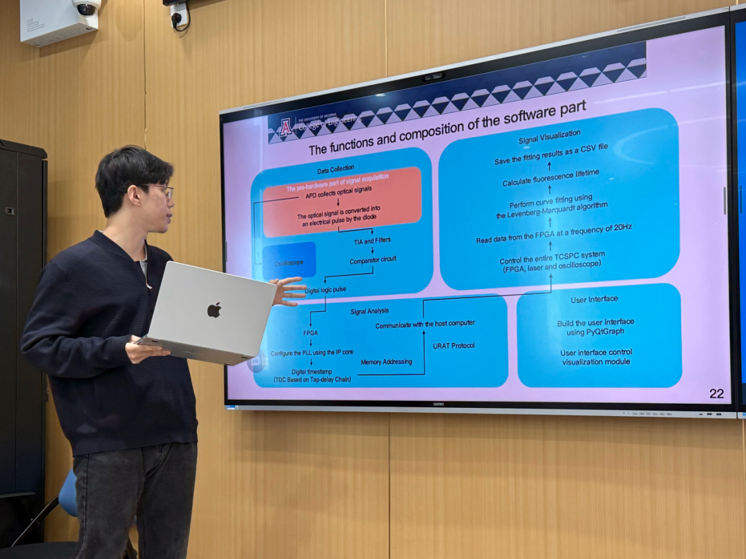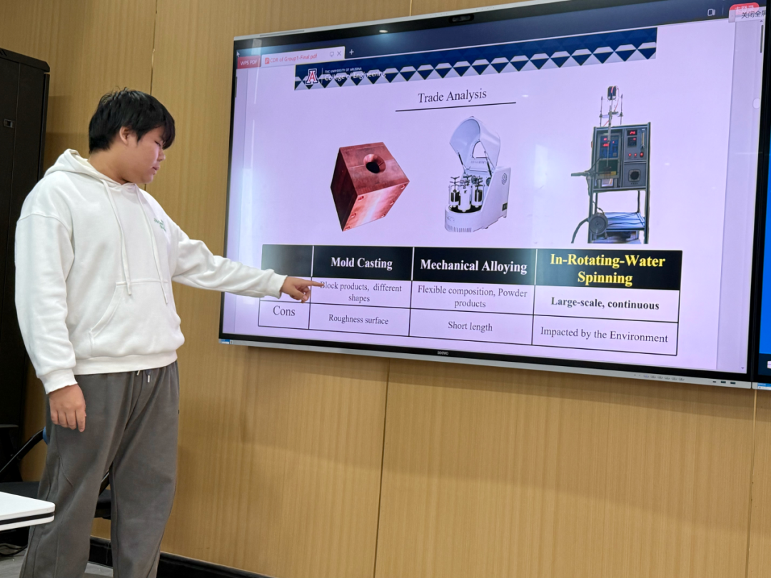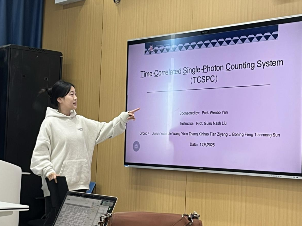 Guiru教授强调,跨学科设计A属高阶挑战课程,学生需在前期夯实数理与材料基础;应用他们学到的材料物理、量子物理、计算机编程、力学性能、材料的表征方法等知识。学生本学期须完成24次梯度作业、32个核心video学习,期中提交proposal与system requirements document后即刻转入实验室动手验证。“先深阅读—再建模型—终做验证”的逆向教学链,彻底颠覆传统大课“听-背-考”线性模式,让学生带着问题进实验室、携着成果出报告。三个月内,学生以全英文工作流完成文献检索-方案设计-预算论证-设备搭建-数据采集-成果答辩,最终实现“学术英语+交叉创新+硬核工程”的三位一体输出。