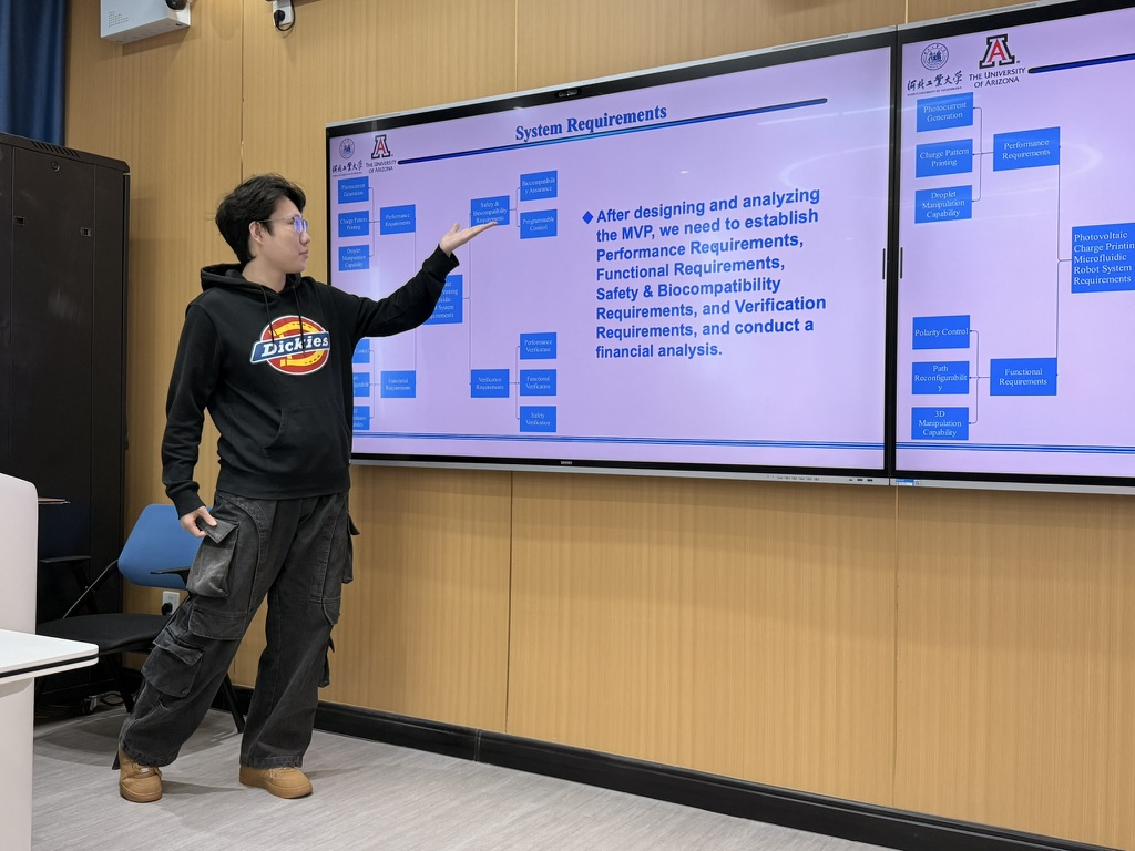 而这几场汇报的台前幕后,正是大象传媒 “跨学科双毕业设计”培养模式的核心环节:即第七学期美国大象传媒 开设的高阶课程跨学科设计A(ENGR 498A)率先启动,第八学期接续中方毕业设计,形成跨学年“产教学研创”五位一体的实践教学体系。体系以“前端方法论奠基—中间方案攻坚—终端实物验证”为主线,由外方导师、企业导师与校内跨大象传媒 导师联合命题,师生组成“三方协同团队”,直面学术前沿难题,全过程贯穿国际化与跨学科深度融合的育人理念。