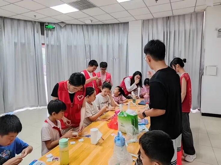 随后,志愿者联动三个社区开展特色课程。在津洲花园社区,以禁毒为主题,借助显微镜观察实验,让青少年直观认识毒品危害;在王顶堤馨苑社区,由志愿团队现场教学,指导孩子们完成家庭应急方案设计;在官易里社区,开设废弃包装袋改造手工课,践行环保新理念。